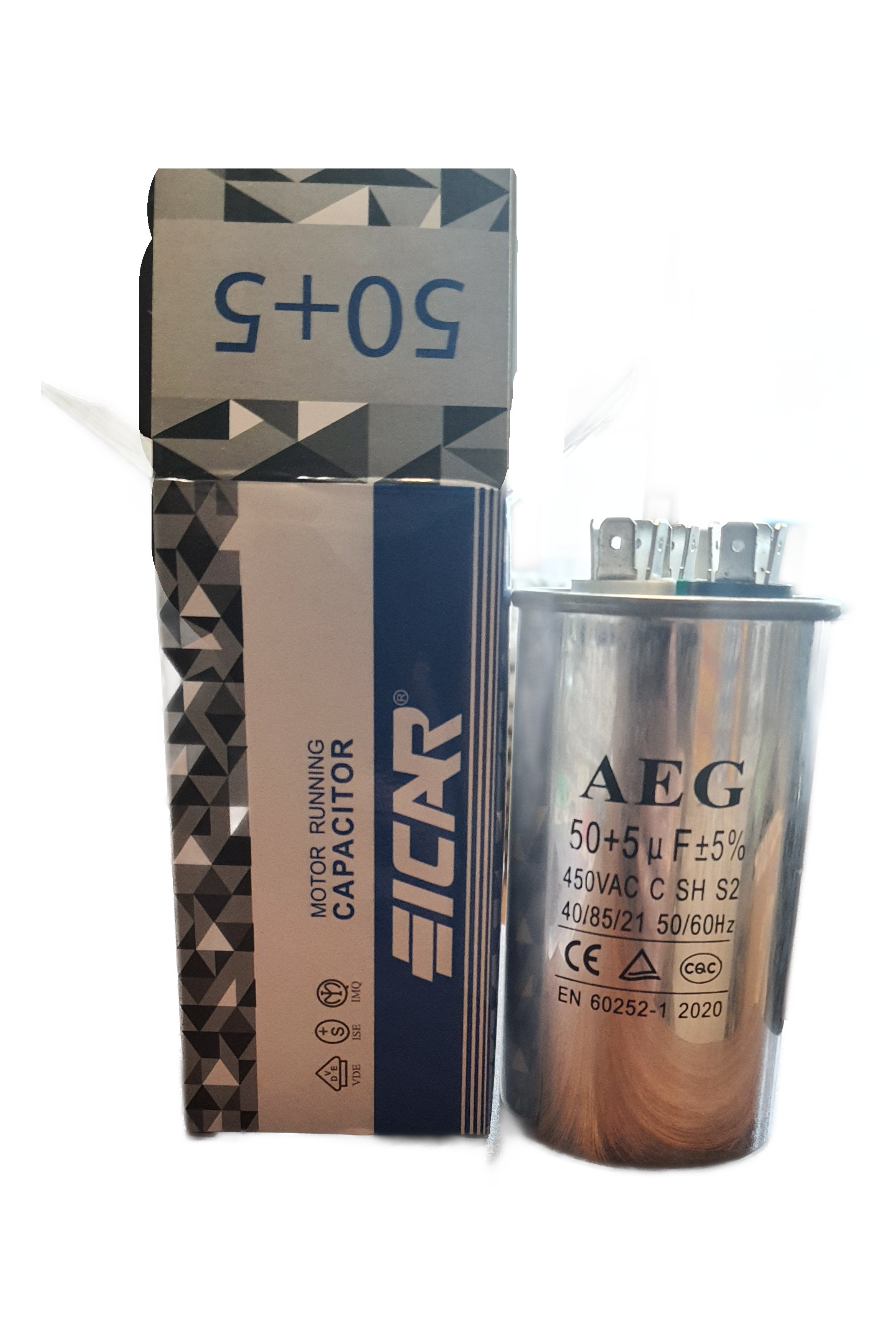 خازن کولر گازی ۵+۵۰ میکروفاراد ۴۵۰ ولت دوظرفیتی